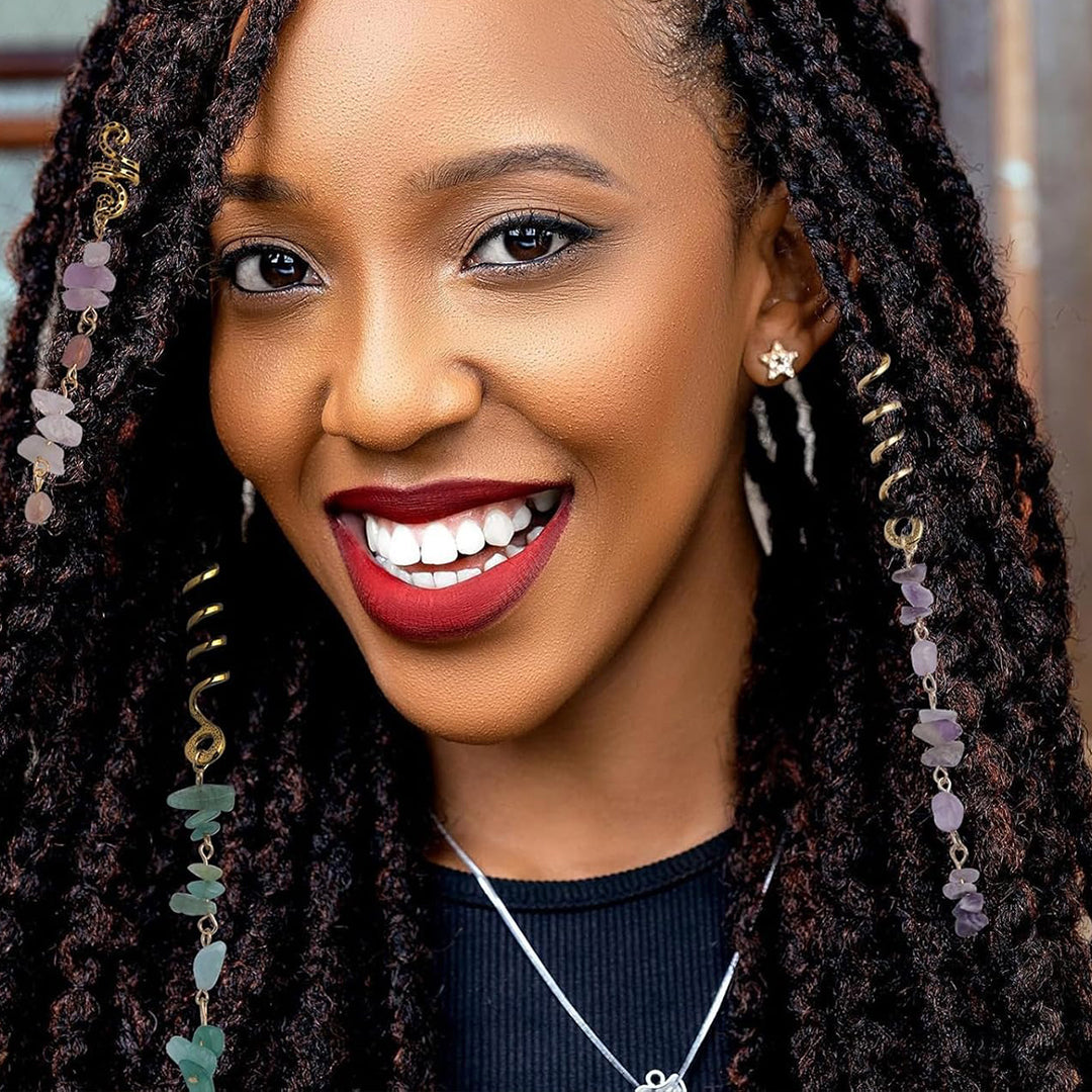 These gold-plated spirals glide into your hair in seconds, giving any style a refined, finished look accented with natural gemstone charms. They hold firmly, fit effortlessly into any braid, and enhance your hair with a touch of elegance. No tools, clips, or complicated styling required.