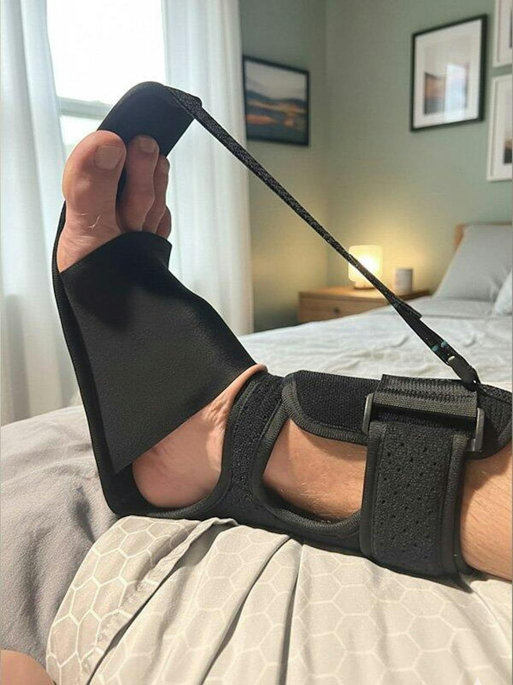 I wear it while watching TV and sometimes at my desk. It’s comfortable enough that I forget it’s on. My foot feels looser in the mornings now, which is a big win.